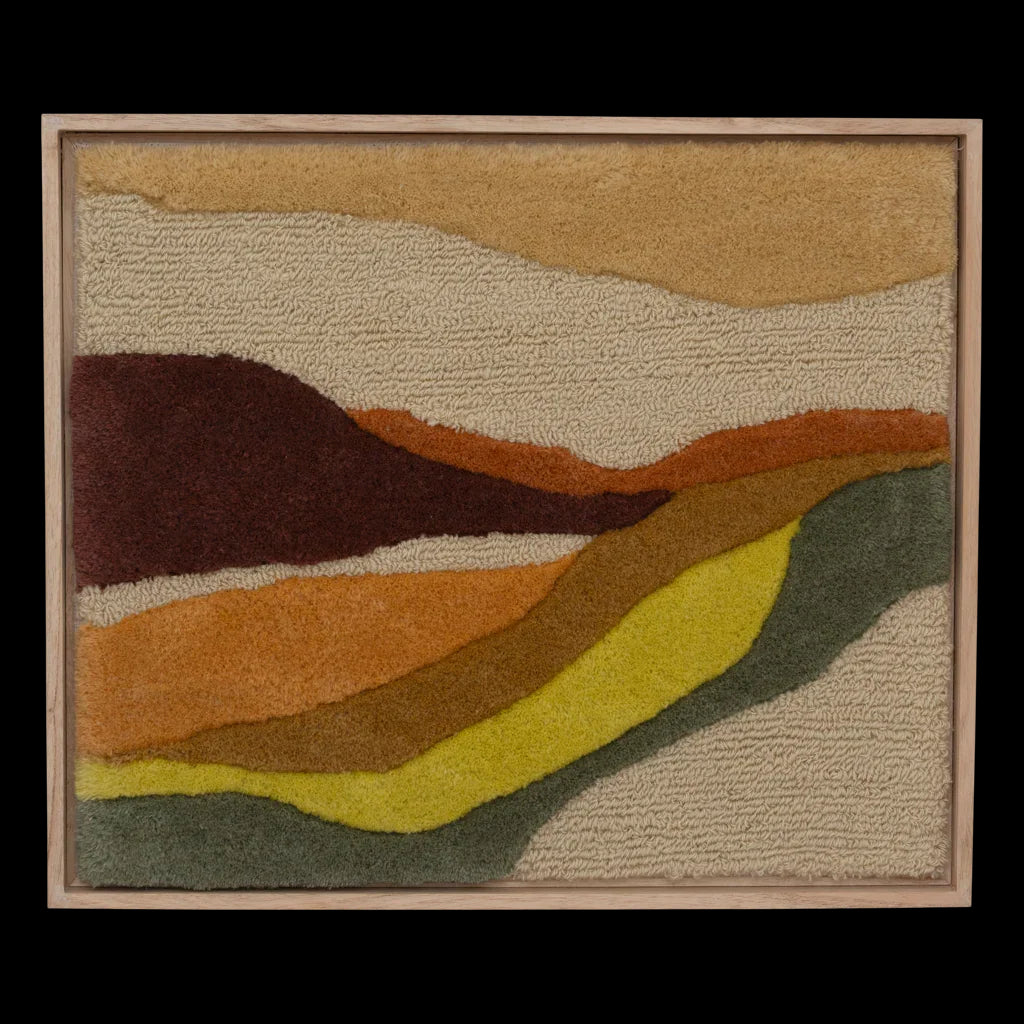 Inspired by nature’s contours, this tufted wool artwork creates an organic landscape in tone and texture. Mounted in a solid oak frame, it's a tactile piece that adds softness and style.